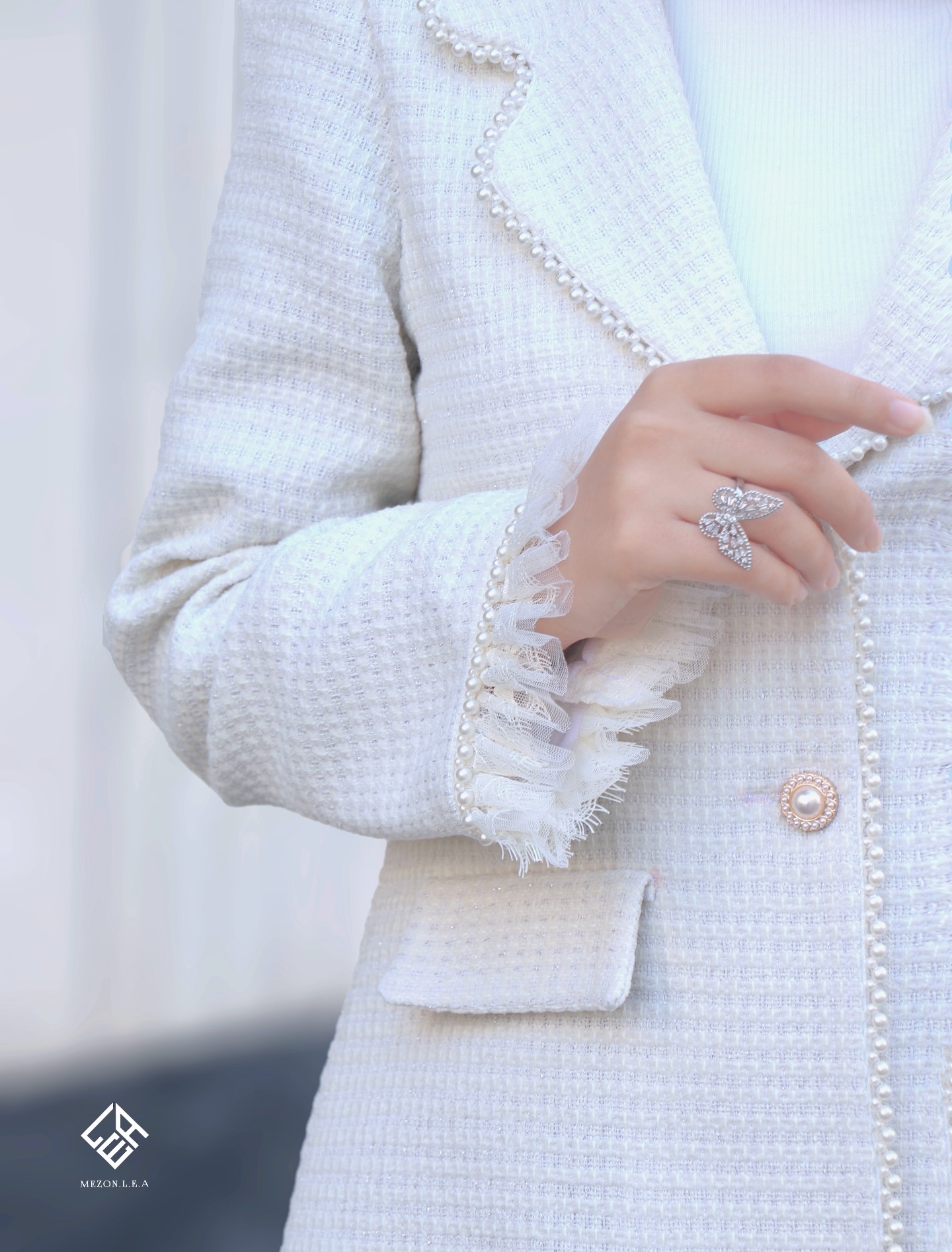 ▪️کراپ کت پیجازی ▫️ویژگیها : ▫️تماماً لایی کوبی شده ▫️کارشده با نوار مغزی چرم ▫️آستین مچی دکمهخور ▫️جنس : موهر